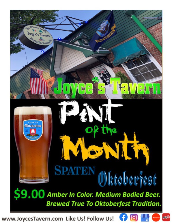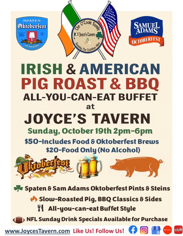 Join us at Joyce’s Tavern for a festive Oktoberfest celebration with a good old-fashioned Irish-American twist!