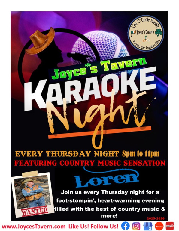 Get ready to kick up your heels and embrace the spirit of the wild west as we bring you an unforgettable Country Night experience at Joyce's Tavern!