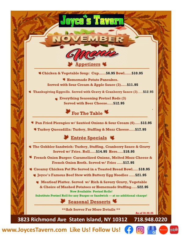 Celebrate the flavors of November and Thanksgiving with us! From hearty comfort food to seasonal delights, we have something for everyone. Don't miss out on these limited-time specials!